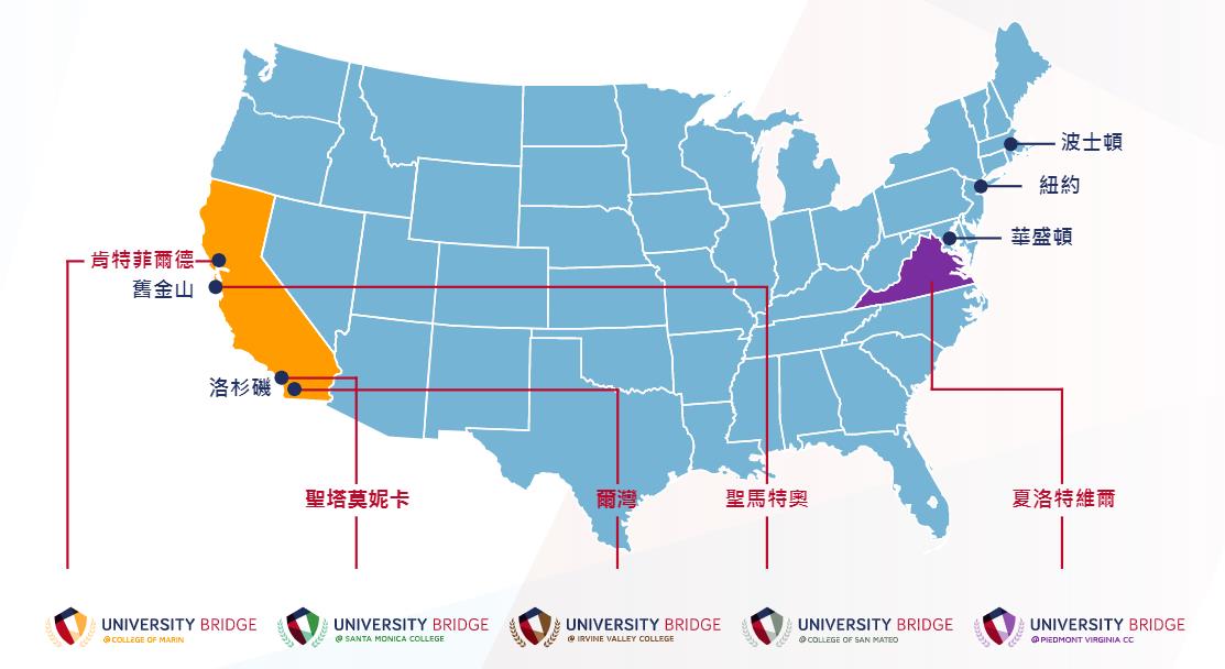 大學橋是一個 2+2 保送轉學計畫項目,與以下美國五所一流的兩年制社區大學合作。